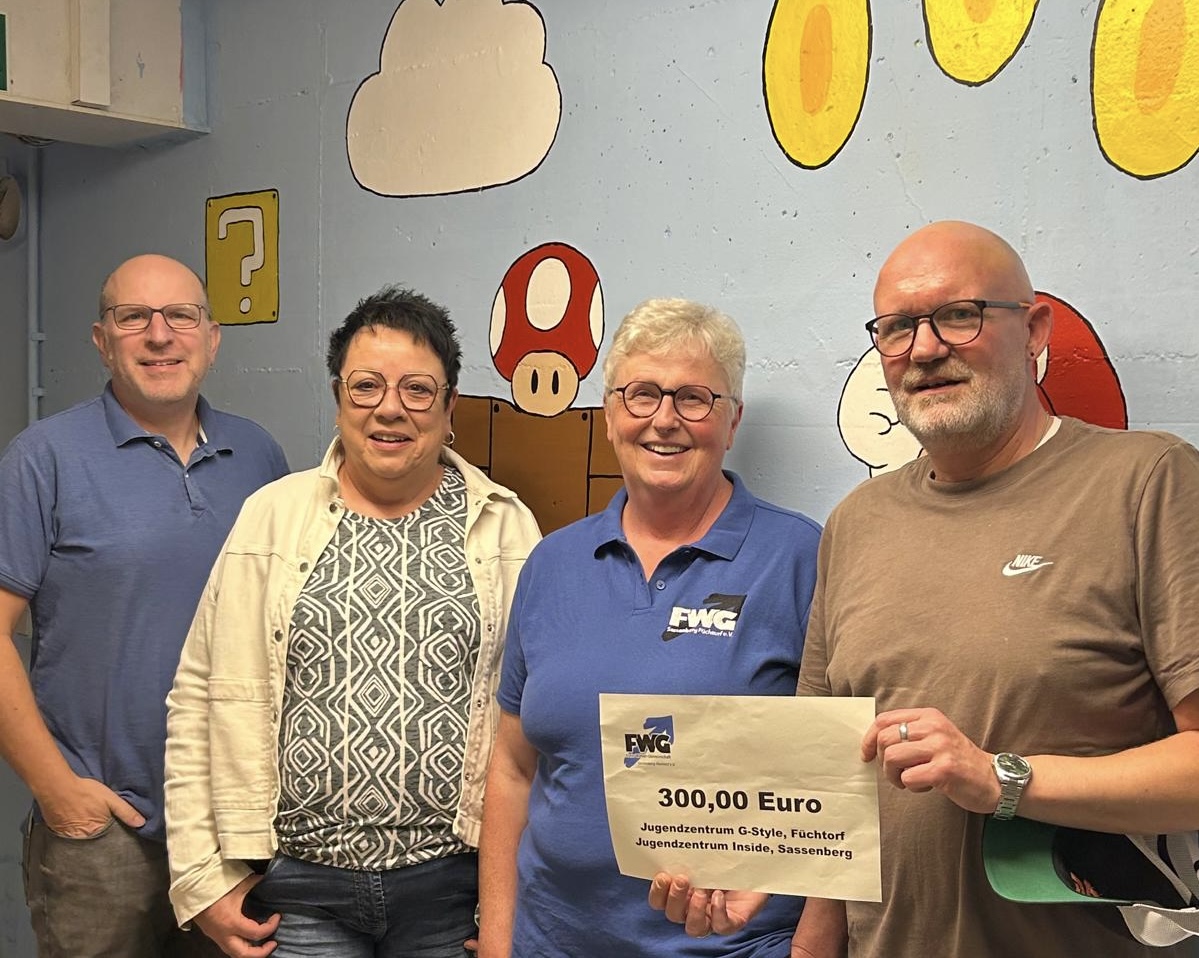 Die Freie Wählergemeinschaft (FWG) hat kürzlich eine Spende in Höhe von 300 Euro an die Jugendzentren in Sassenberg und Füchtorf übergeben. Stadtjugendpfleger Dirk Ackermann nahm die Zuwendung persönlich entgegen und bedankte sich im Namen seines Teams für die Unterstützung.
